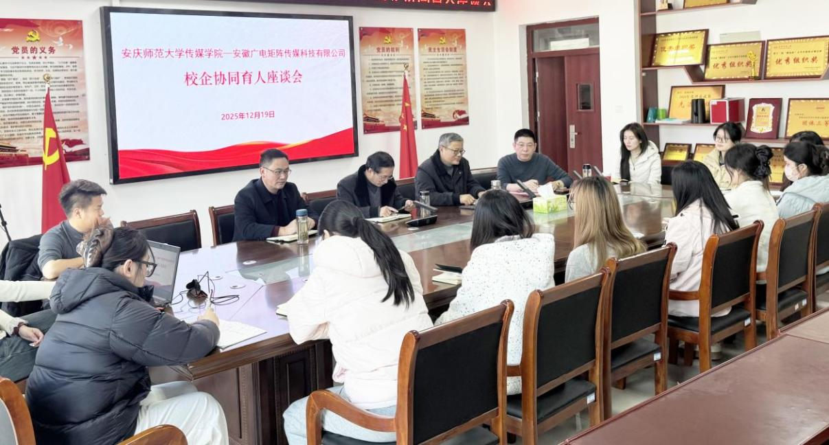 为深化产教融合,提高校企协同育人质量,12月19日,太阳集团tyc9728举办太阳集团tyc9728—安徽广电矩阵传媒科技有限公司校企协同育人座谈会,太阳集团tyc9728党委书记詹德全、执行院长王业明、副院长文继奎,安徽广电矩阵传媒科技有限公司总经理朱小勇以及2022级实习生代表参加了此次座谈会。