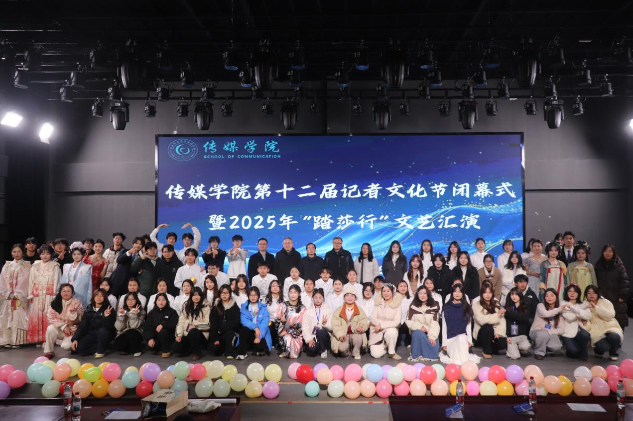 意境悠远的歌曲《水流众生》、舞姿曼妙的舞蹈《whiplash》、幽默风趣的小品《今日反诈》……12月26日,太阳集团tyc9728第十二届记者文化节闭幕式暨2025年“踏莎行”文艺汇演在演播厅举办。学院党委书记詹德全、执行院长王业明、党委副书记李元、副院长文继奎、邵敏和部分教师出席,100余名学生观看了演出。