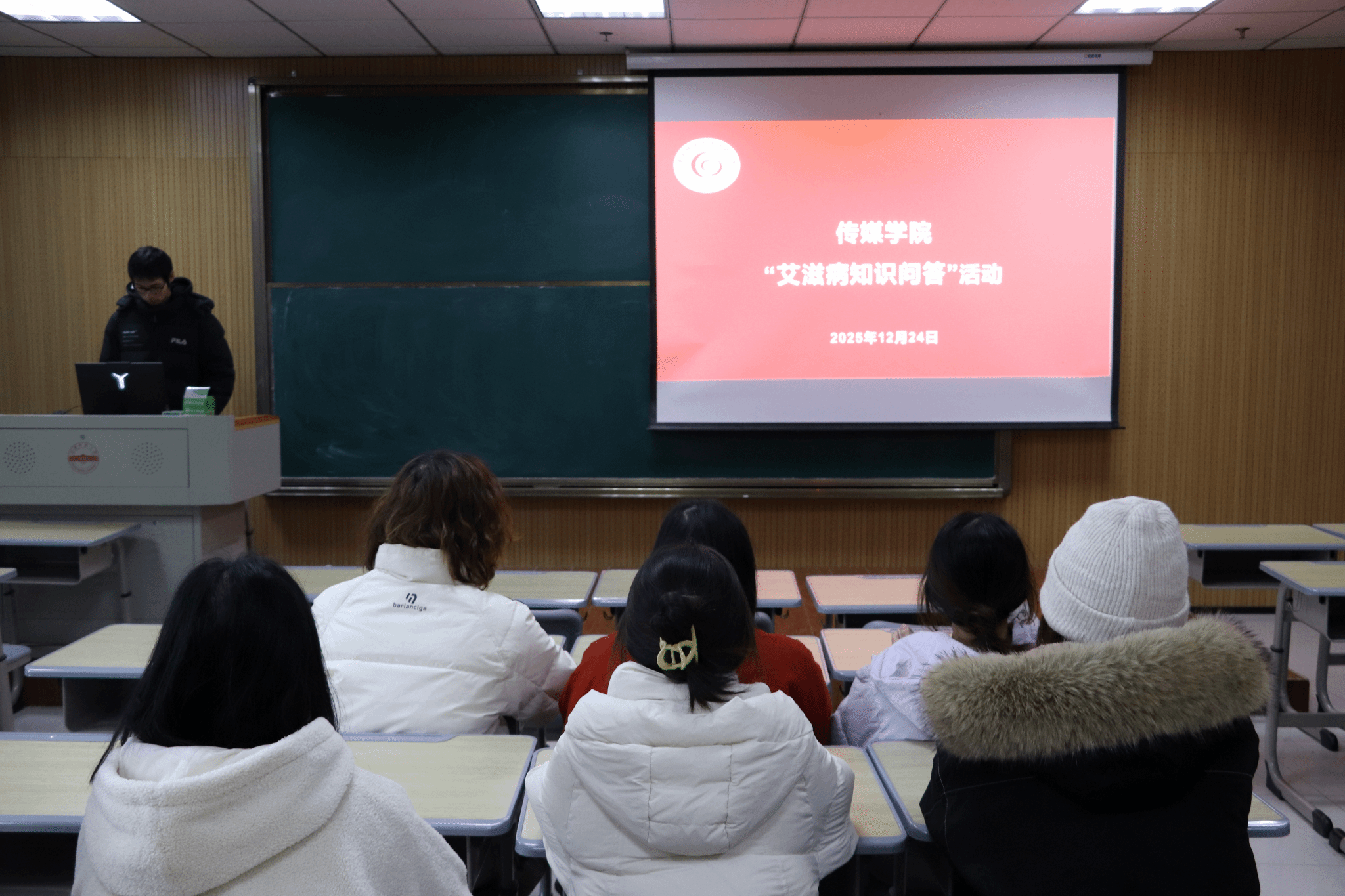 12月24日,太阳集团tyc9728在k427教室举办了世界艾滋病宣传日活动。活动设有“艾滋病知识问答”环节,以趣味形式吸引了一批学生参与,增强了大家的体验感。