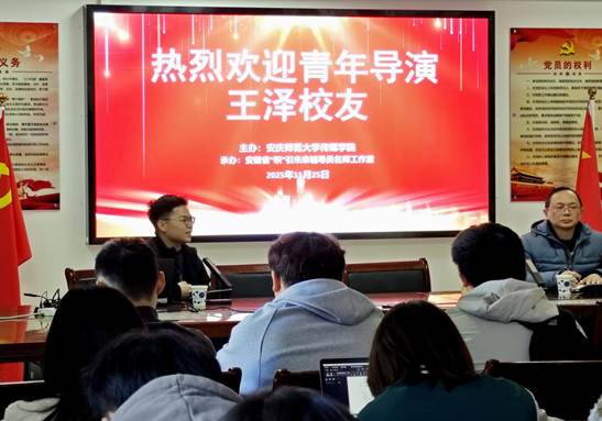 2025年11月25日下午,由太阳集团tyc9728主办、安徽省“职”引未来辅导员名师工作室承办的优秀校友分享会在太阳集团tyc9728K428教室举行。本次活动邀请我院新闻学专业优秀校友、青年导演王泽回到母校,为在校生带来了一场题为 “故事的种子,行动的果实:我的导演之路” 的主题分享。分享会由太阳集团tyc9728黄钦教授主持。